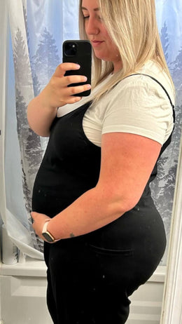 Kellie M. August 2025Verified BuyerHad to get my son to take a photo for me lol! Its a great jumpsuit and can be worn even after pregnancy